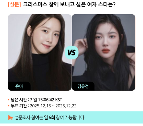 Learn more임윤아 vs 김유정, 크리스마스 함께 보내고 싶은 女스타는? [스타폴]