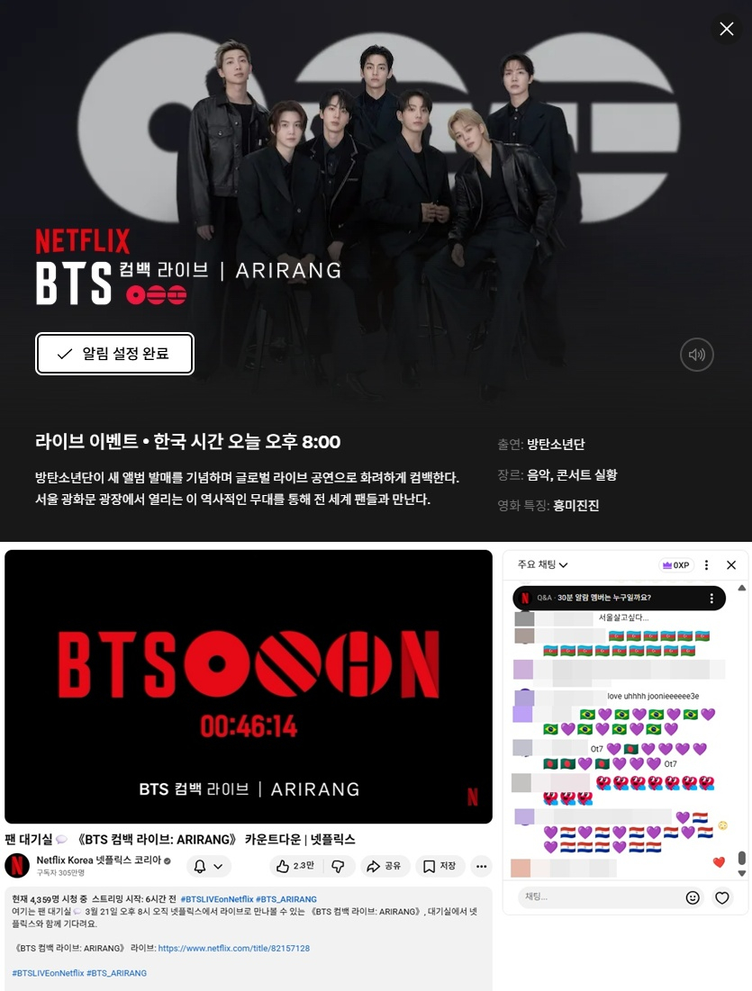 Learn more'BTS 컴백 라이브' 30분 前, 넷플릭스 채팅창도 '활활'..7000명 아미 모였다 [스타이슈]