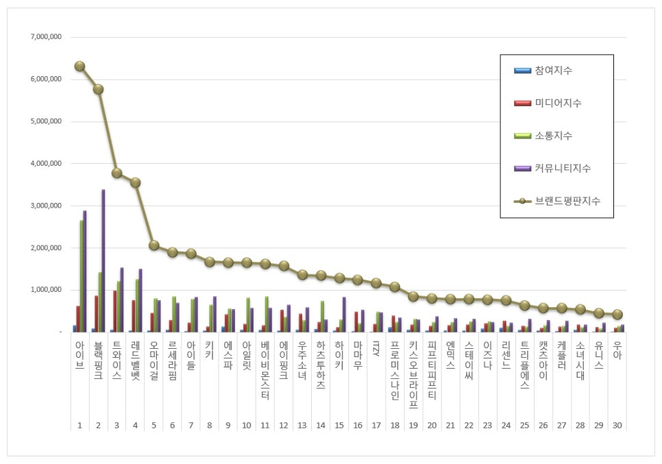 1위 아이브, 2위 블랙핑크, 3위 트와이스