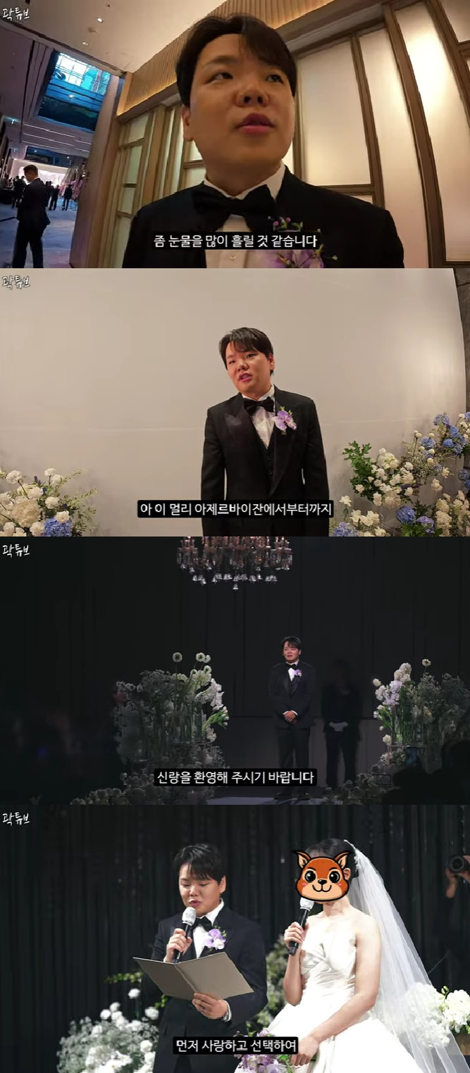 여행 크리에이터 겸 방송인 곽튜브가 결혼식에서 눈물을 보였다. 20일 유튜브 채널 '곽튜브'에는 '믿기지 않는 나의 결혼식 브이로그'라는 제목의 영상이 공개됐다.