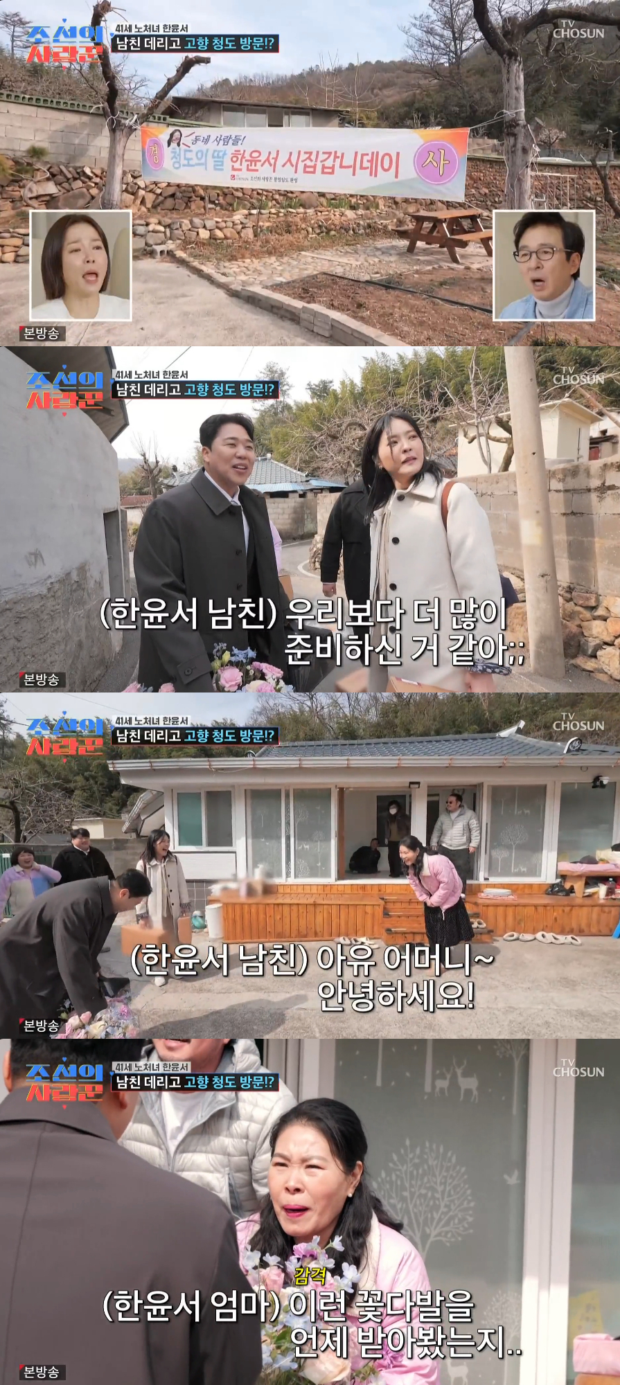 '조선의 사랑꾼' 한윤서의 어머니가 예비 사위를 환영했다. 6일 방송된 TV조선 '조선의 사랑꾼'에서는 한윤서가 예비 신랑과 함께 본가에 방문한 이야기가 그려졌다.
