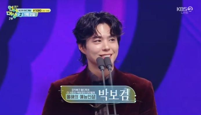 Learn more박보검, '2025 KBS 연예대상' 올해의 예능인상 수상.."좋은 영향력 주는 사람이 될 것"