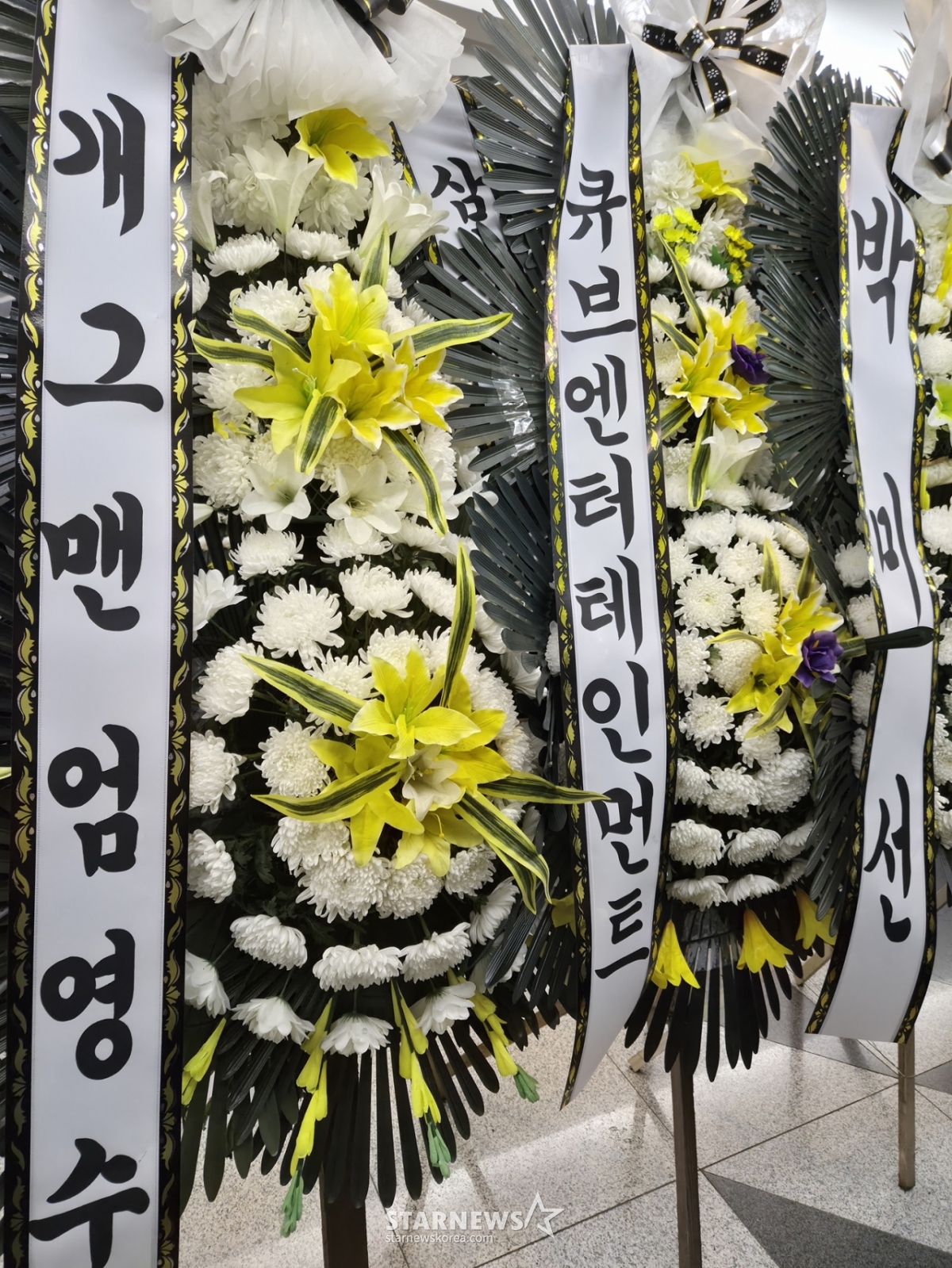 근조화환 행렬도 이어졌다. 심형래, 엄영수, 박미선, 박준형, 김지혜, 김준호, 김지민, 김대희, 유민상, 김민경, 홍윤화, 고명환, 최양락. 팽현숙. 진미령, 이윤석, 김용만, 안정환, 정형돈, 김남일, 박성광, 정호영, 배우 박중훈, 가수 조용필, 인순이, 코요태 등이 근조화환을 보냈다.