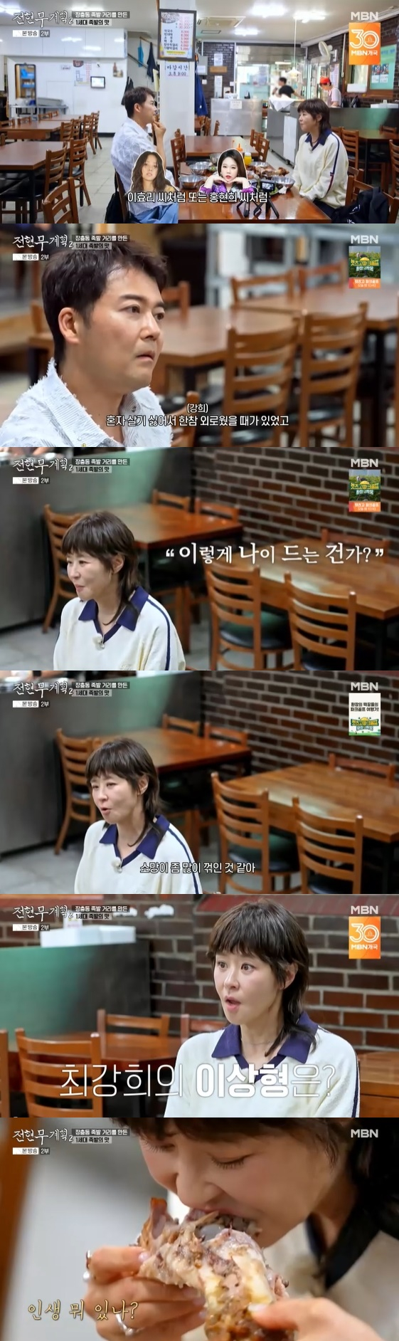 이날 장충동의 한 족발 맛집을 찾은 전현무는 '여사친' 최강희에게 "이제 40대 후반인데 현실적인 고민이 있느냐"라고 물으며 진솔한 대화를 나눴다. 이에 최강희는 "이효리 씨나 홍현희 씨처럼 단짝이 있으면 정말 좋겠다"며 외로움을 토로했다.