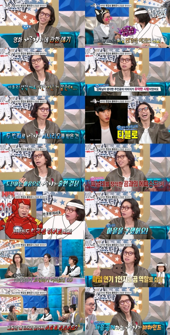 또한 외국인과 변강쇠의 대결 장면의 비하인드까지 끝없이 에피소드를 쏟아내는 봉태규의 모습에 MC 김구라도 "그동안 얘기하고 싶어서 어떻게 참았어요?"라고 혀를 내둘렀다. 1일 오후 10시 30분 방송.