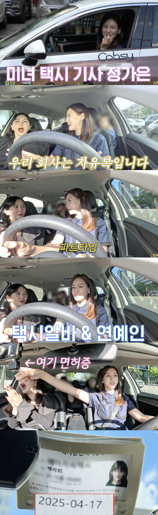 또한, 본명 '백라희'로 기재된 택시운전 자격증을 꺼내 보이며, 2025년 4월 면허를 취득했다고 소개했다. 그는 "우리 아빠도 택시를 오래했고, 내가 운전하는 걸 좋아한다. 재밌을 것 같아서 했다"며 자격증 취득 이유를 밝혔다.