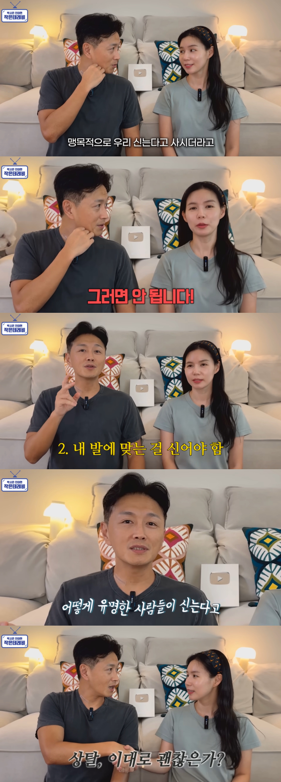 진태현은 "내 발에 맞는 걸 신어야 한다. 유명한 사람들이 신는다고 신으면 안 된다. 여러 스포츠 브랜드들이 있는데, 신발 용도가 다 나와 있다. 그런 걸 찾아서 신으면 된다"고 조언했다.