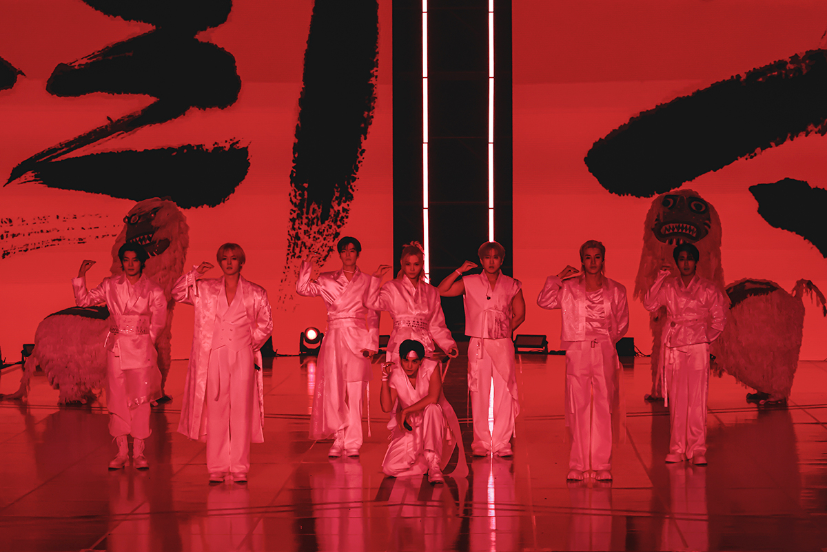 이재명 대통령은 "미국 빌보드 '빌보드 200' 차트 70년 역사상 최초로 7개 작품 연속 1위에 오른 우리 문화의 자랑"이라며 스트레이 키즈를 소개했다. 전통적 요소를 결합한 웅장한 인트로와 함께 등장한 스트레이 키즈는 그룹 대표곡 '소리꾼'과 '神메뉴'(신메뉴)를 국악 버전으로 편곡해 선보였고 흔들림 없는 탄탄한 라이브 퍼포먼스와 독보적인 무대 장악력으로 현장 관객은 물론 생중계를 시청한 글로벌 팬들을 열광케 했다.