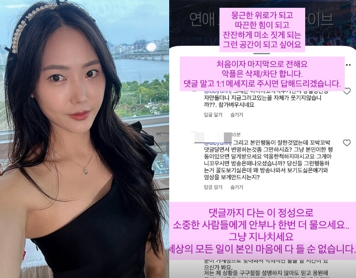 '돌싱글즈3' 출연자 변혜진이 '나는 솔로' 16기 영철과의 럽스타그램을 공개한 이후 자신을 향한 악플에 직접 답했다.