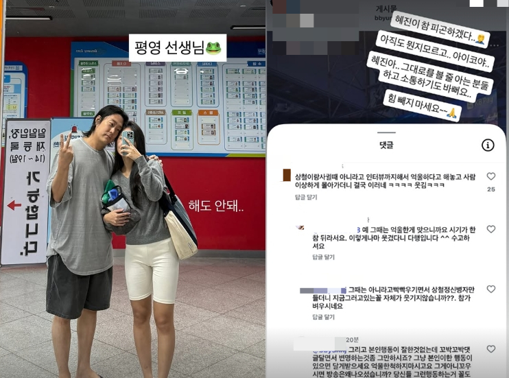 변혜진은 이와 함께 자신이 받은 악플도 공개했다. 한 네티즌은 변혜진을 향해 "상철이랑 사귈때 아니라고 인터뷰까지 해서 억울하다고 해놓고 사람 이상하게 몰아가더니 결국 이러네. 웃김"이라고 달았고 또 다른 네티즌도 "그때는 아니라고 빡빡 우기면서 상철 정신병자 만들더니 지금 그러고 있는 꼴 자체가 웃기지 않습니까? 참 가벼우시네요"라고도 했다.