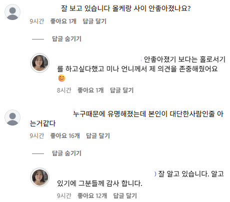 특히 박수지는 미나 류필립과의 불화설 이슈에도 직접 답하는 모습도 보였다.