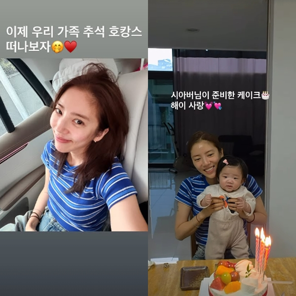 또한 손담비는 "시아버님이 준비한 케이크 해이 사랑"이라며 영상도 담아냈고 이후 "이제 우리 가족 추석 호캉스 떠나보자"라고도 전했다.