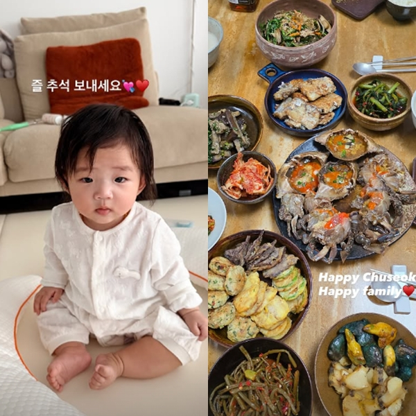 손담비는 딸 해이 사진과 함께 "즐 추석 보내세요"라고 인사를 건네고 이어 여러 추석 음식들에 더해 "Happy Chuseok Happy Family"라고 덧붙였다.