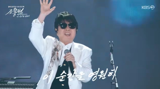 '조용필, 이 순간을 영원히'는 대한민국의 모든 세대를 아우르는 레전드, 조용필이 KBS에서 1997년 '빅쇼' 이후 28년 만에 선보인 단독 무대. 특히 전석 3분 매진의 신화를 이루며 '리빙 레전드' 조용필의 저력을 입증한 '조용필, 이 순간을 영원히' 고척돔 공연은 무대의 규모와 퀄리티, 관객 호응도 모두 역대급이라는 호평을 얻었고, 이날 4K UHD 초고화질로 방송됐다.