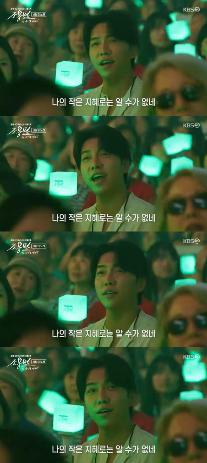 '바람의 노래' 때는 가수 이승기가 관객석에서 포착돼 눈길을 끌었다. 이승기는 선배 가수 조용필의 노래를 따라 부르며 무대에 흠뻑 빠져 감동한 모습이었다.