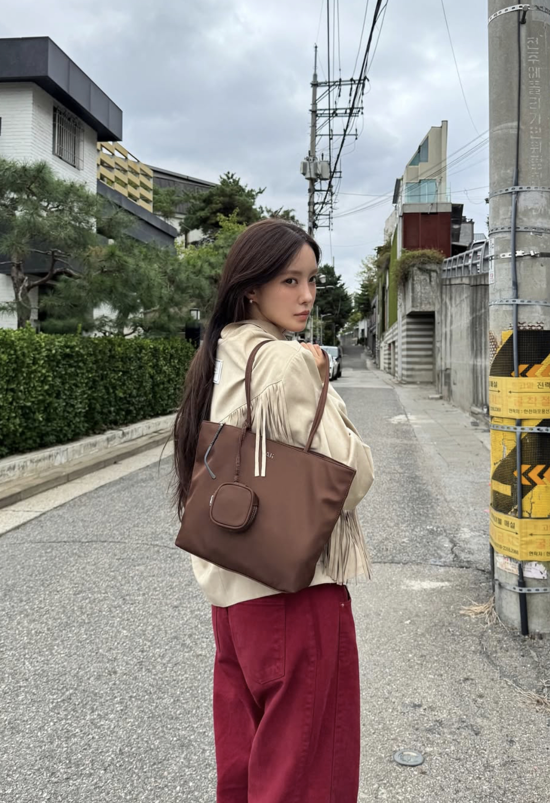 이어 공개된 또 다른 사진에서는 "내 패션 맘에 들어~"라며 앞치마 패션을 뽐내고 있으며, 외출한 듯 보이는 사진 속에서는 빨간색 바지에 베이지색 재킷, 금테 안경을 착용한 효민의 힙한 패션이 눈길을 끌었다. 마치 MZ세대 감성을 지닌 세련된 새댁의 모습으로, 명절 패션조차 개성 있게 소화한 모습이다.