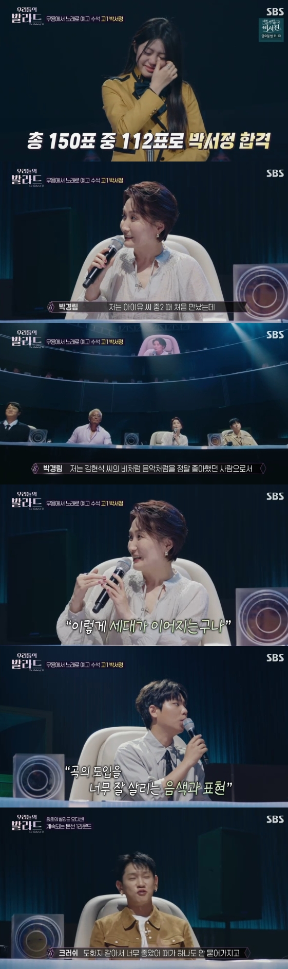 7일 방송된 SBS 예능 프로그램 '우리들의 발라드'에는 내 인생의 첫 발라드를 주제로 한 1라운드 대결이 펼쳐진 가운데 아이유처럼 맑은 목소리가 매력적인 참가자가 등장해 판정단의 귀를 사로잡았다.