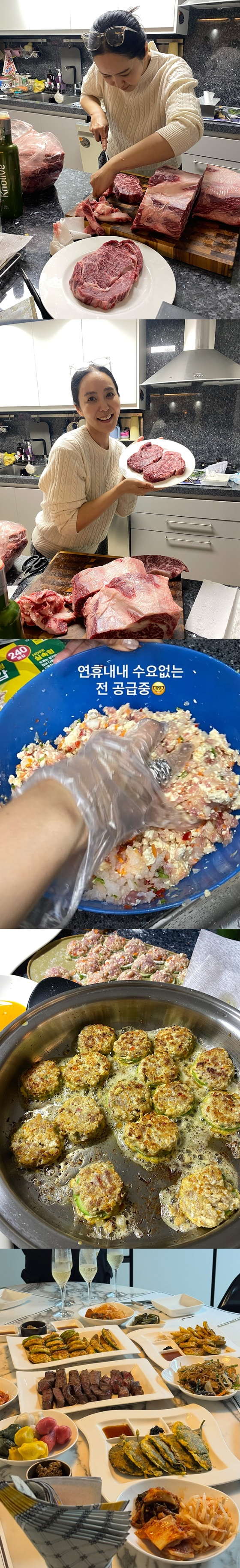 이와 함께 공개한 사진엔 박지윤이 명품 가방을 멘 채 여유롭게 백화점 식품코너 쇼핑을 즐기고 있는 모습이 담겼다. 또한 그는 "연휴 내내 수요 없는 전 공급 중"이라며 요리에 열을 올리고 있는 자태로 웃음을 안겼다. 결국 박지윤은 푸짐한 한 상을 뚝딱 차리며 놀라운 '금손' 면모를 자랑하기도 했다.