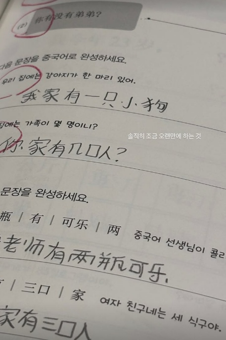 율희는 8일 자신의 계정에 "솔직히 조금 오랜만에 하는 것"이라며 중국어 공부를 한 흔적을 공개했다.