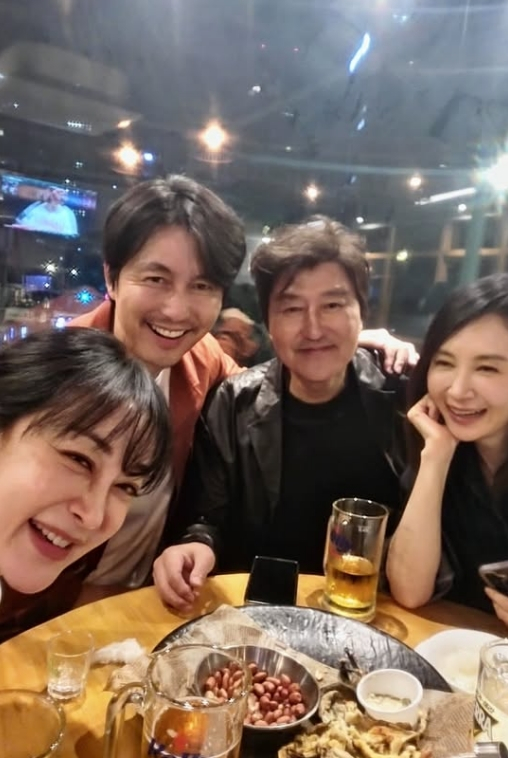 특히 송강호 옆에 밝게 웃고 있는 정우성의 모습도 포착돼 눈길을 끈다. 앞서 정우성은 지난해 11월 모델 출신 문가비가 출산한 아들의 친부라는 사실이 밝혀져 혼외자 논란에 휩싸였다. 이후 그는 청룡영화상 시상식 무대에 올라 "모든 질책은 제가 받고, 안고 가겠다. 아버지로서 아들에 대한 책임은 끝까지 다할 것"이라고 밝혔다. 당시 굳은 표정으로 입장을 전했던 것과 달리, 그는 동료들과 사석에서 환한 미소를 짓고 있다.