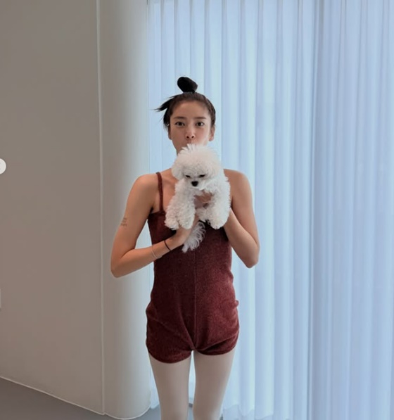 공개된 사진에는 발레복을 입고 있는 손담비의 모습이 담겼다. 타이즈와 발레 슈즈도 착용하고 있다.