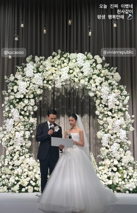 비비엔과 사촌인 소녀시대 유리도 "오늘 진짜 예뻤네. 천사 같이. 평생 행복만해"라며 두 사람의 결혼을 축하했다.