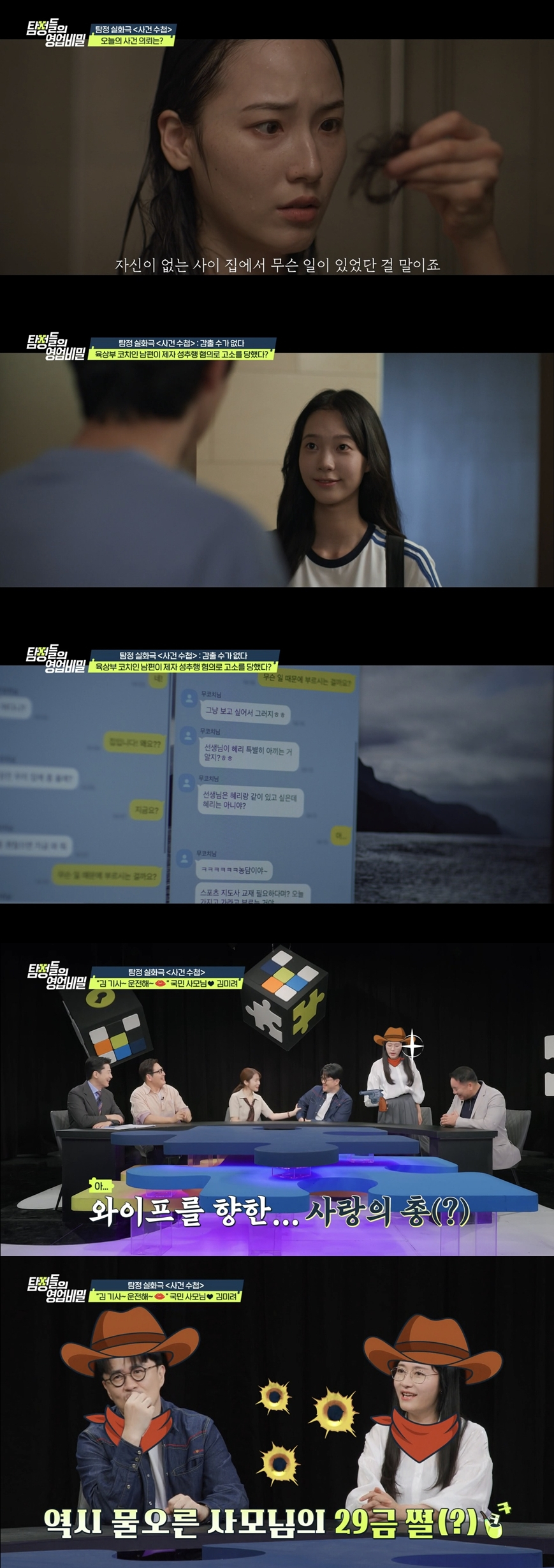 한편, 이날 방송에는 '영원한 국민 사모님' 김미려가 일일 탐정으로 합류해 유쾌한 웃음을 더한다. 김미려는 남편의 별명 '연남동 총잡이'에 얽힌 비하인드부터 상상을 초월하는 29금 토크로 스튜디오를 초토화시킨다. 이에 데프콘은 "성대모사 몇 개만 하자, 수위가 너무 높아 방송에 나갈 수 있는 멘트가 많이 없다"며 진땀을 빼는 모습을 보여 폭소를 유발한다.