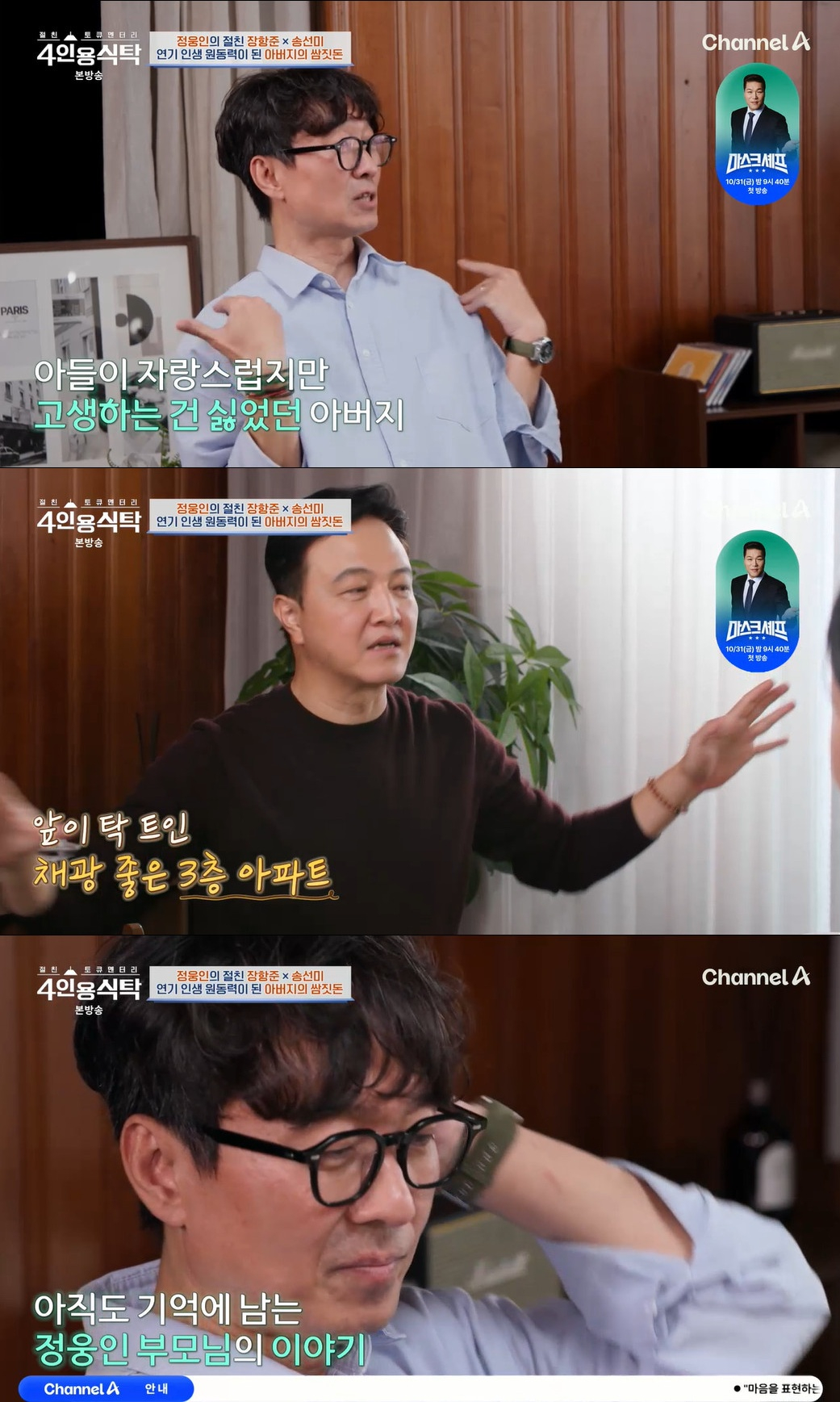 13일 방송된 채널A '4인용식탁'에는 배우 정웅인, 송선미, 장항준 감독이 게스트로 출연했다.