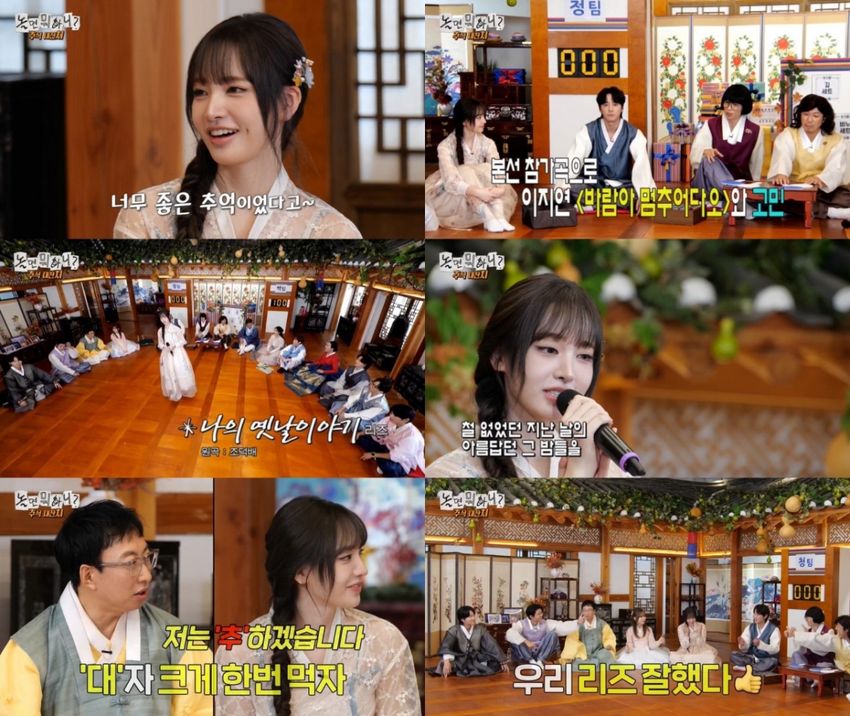 이후 본격적으로 추석 대잔치 속 청백 노래 대항전이 시작됐다. 리즈는 청팀 소속으로 3라운드에 출전해 가요제 본선 참가곡으로 고민했던 조덕배의 '나의 옛날이야기'를 선곡해 열창했다.