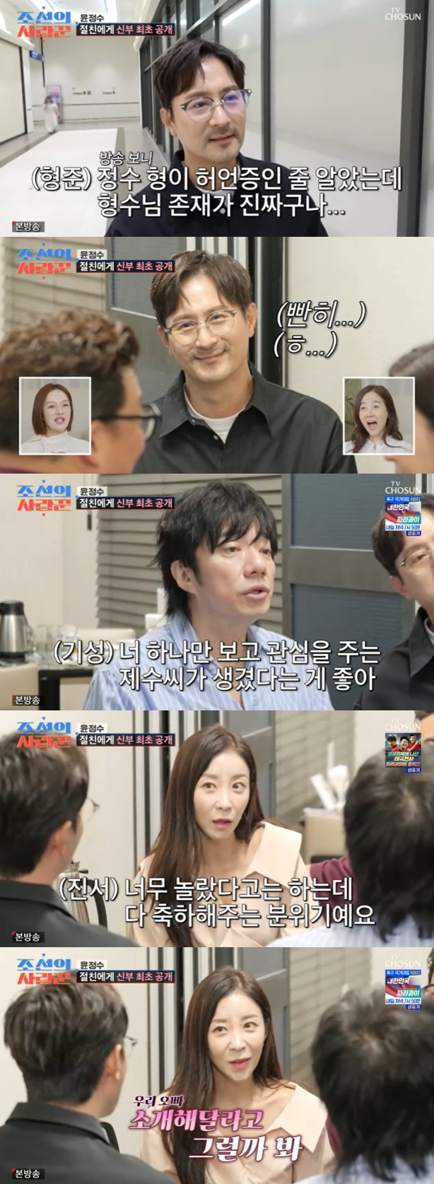 13일 방송된 TV조선 '조선이 사랑꾼'에서는 가수 배기성과 배우 임형준이 '찐친' 윤정수의 결혼 실체를 확인했다. 앞서 두 사람은 윤정수가 돌연 결혼한다고 하자 믿지 않았던 반응을 보였던 바다.