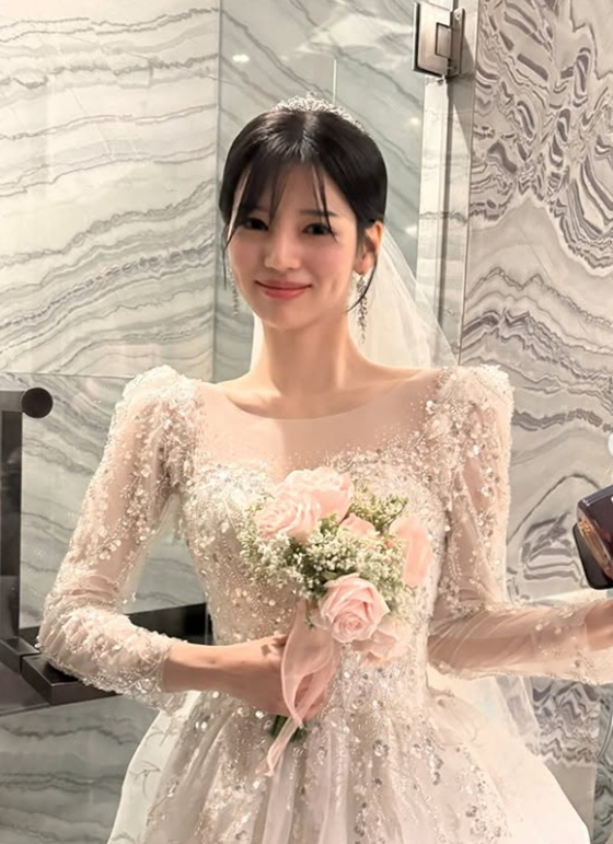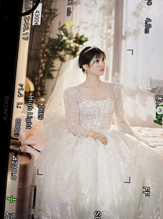 안유정은 순백의 웨딩드레스를 입고 우아하고 아름다운 비주얼을 뽐내 눈길을 끌었다.