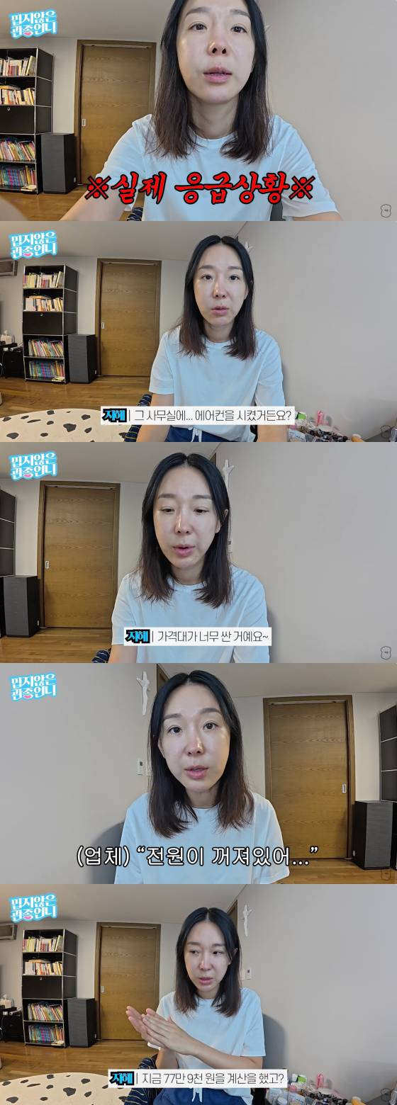 이후 이지혜는 다시 한번 에어컨 업체 측에 연락을 취했으나 역시나 전원이 꺼져 있었고 이지혜는 "사기다. 사기"라며 좌절했다.