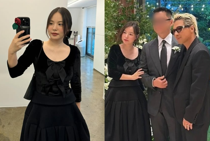 공개된 사진 속 민효린은 검은색 하객룩을 입고 미소를 지으며 건재한 미모도 뽐냈다.