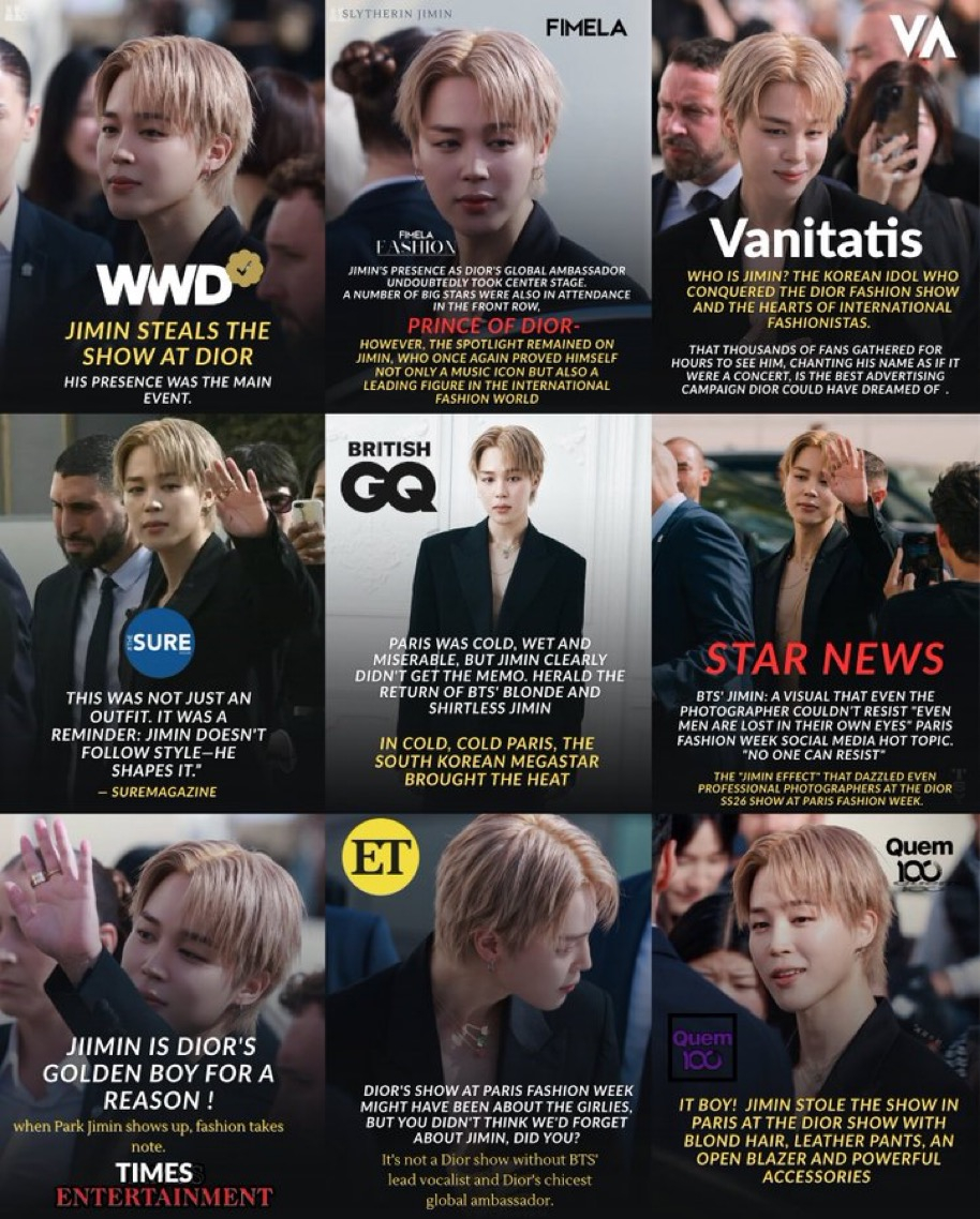 특히 10월 1일 디올 쇼 당일, 지민이 등장하자 파리 현지 매체를 비롯해 유럽과 미국 주요 언론이 일제히 "지민이 쇼의 앞자리에서 빛났다"고 보도하며 그의 사진을 대대적으로 게재했으며 이 날 언급량이 최고점을 찍었다.