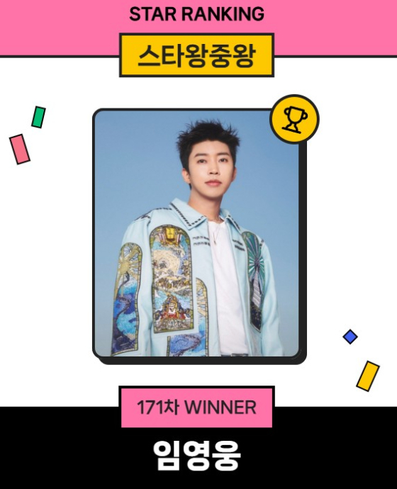 임영웅은 지난 10일 오후 3시 1분부터 17일 오후 3시까지 진행된 171차 스타왕중왕 랭킹 투표에서 31만 885표를 받아 1위에 이름을 올렸다.