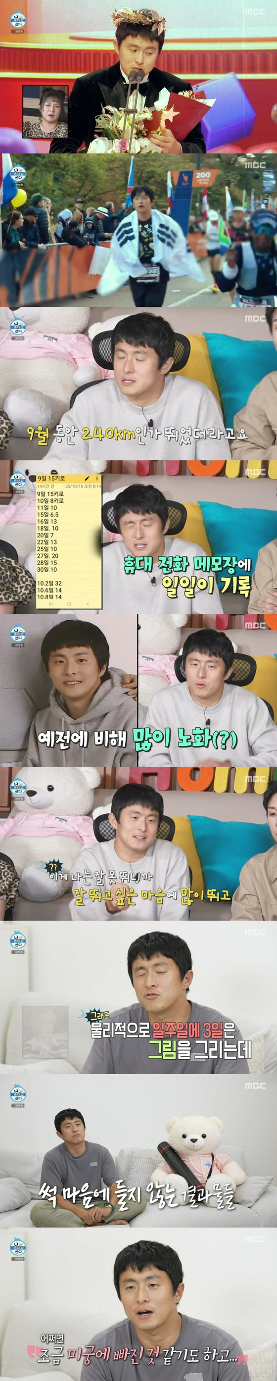 기안84는 "달리기가 건강해지는 대신에 많이 늙는다. 제가 잘 못 뛰니까 잘 뛰고 싶은 마음에 많이 뛴다. 그렇게 우리는 션이 되어가는 거다"라고 너스레를 떨기도 했다.