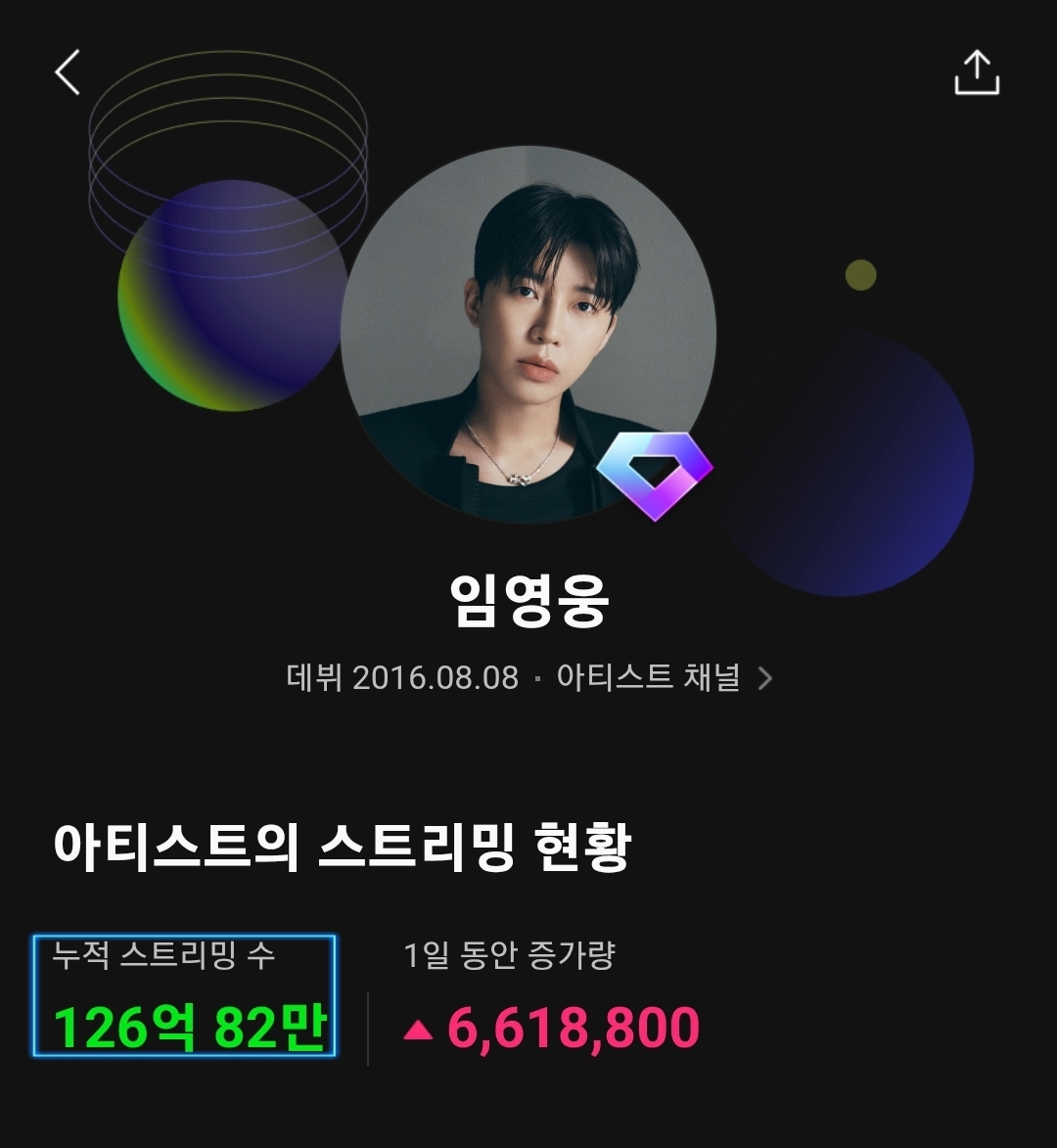 임영웅은 2024년 6월 18일 누적 스트리밍 100억 회를 넘어서며 '다이아 클럽' 아티스트에 이름을 올렸다. 임영웅은 '다이아 클럽'에 등극하며 글로벌 톱 인기 그룹 방탄소년단(BTS)과 어깨를 나란히 했다. 솔로 가수 1위 기록이다.
