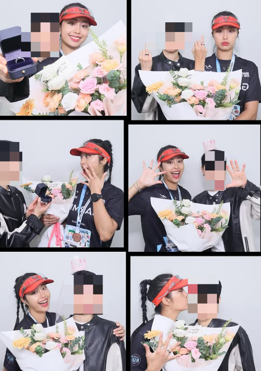 곽선희는 18일 "꼭두새벽부터 일어나 대회 준비 도와주고 직접 대회장까지 운전에 주로 응원도 해주고 마지막엔 프러포즈까지..특별하다 못해 찬란한 하루"라며 "반지 받고 진짜 광광 울뻔! 하다가 그 찰나에 눈물 쏙 들어감. 이유는... 1. 화장 뭉개질까봐. 2. 사람 많아서 정신차림. 다시봐도 감동적이야"라고 밝혔다.