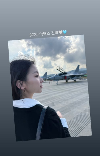 사진에 더해 주니는 "2025 아덱스 견학"이라며 남편의 근무지로 보이는 곳들을 공개했다.