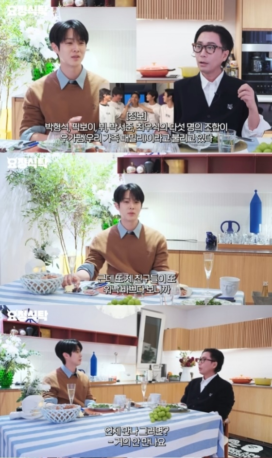이에 정재형이 "안 친하니?"라고 장난스럽게 묻자 최우식은 "그냥 친구들인데 어떻게 하다 보니까 모임명까지 생겨버렸다. 그냥 친구들끼리 한 명이 누가 너무 좋아서 데리고 오면 같이 본다. 같이 만나는 시간이 요즘에는 더 드물다. 다들 바빠서 자주 보진 못하지만, 연락은 여전히 자주 한다"라고 전했다.
