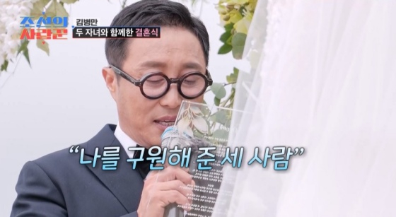 김병만은 "우리 아내를 잘 키워주셔서 감사하다. 이런 선물을 주셔서…"라고 운을 뗐지만, 솟구치는 여러 감정에 말을 잇지 못했다. 하객들도 눈시울을 붉힌 가운데, 지켜보던 사랑꾼 MC들도 눈물을 흘렸다.