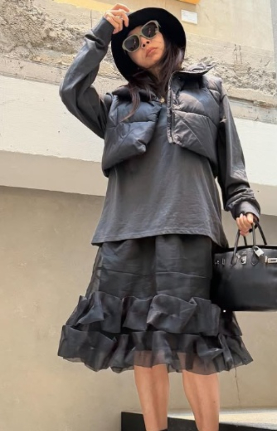 공개된 사진 속 황신혜는 올블랙 스타일링으로 세련된 분위기를 자아냈다. 그는 블랙 버킷햇과 선글라스로 얼굴을 감싸며 시크한 무드를 연출했다. 여기에 패딩 베스트와 루즈핏 상의, 롱스커트까지 올블랙 아이템을 레이어드해 스타일리시한 겨울 패션을 완성했다.