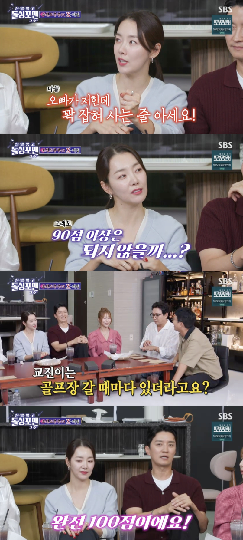 김준호는 이에 공감하며 "소이현 씨가 90점 이상인 게 맞다. 인교진 씨가 골프장에 있을 때마다 나와 있더라"고 폭로했다. 그러자 인교진은 "방송이라서 하는 말이 아니라, 제 아내는 100점이다"라며 애정을 드러냈다.