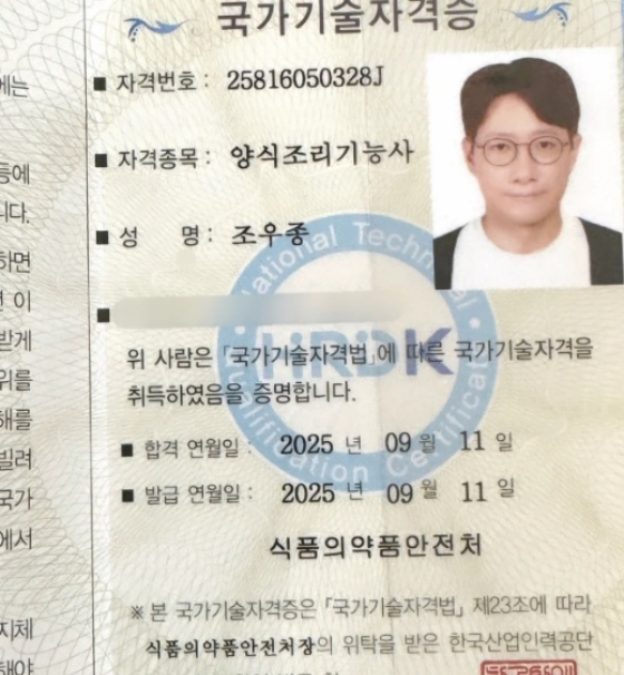 조우종은 지난 21일 자신의 SNS에 "축하해주셔서 감사하다. 양식조리기능사 합격"이라며 "준비 해보고 나니 요리가 얼마나 대단한 일이고 고귀한 작업인지 깊이 깨닫게 됐다"고 말했다.