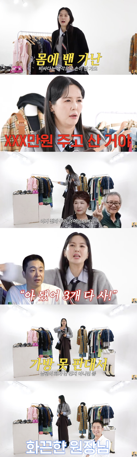 그는 "단위는 없었다. 남편이 '아 됐어, 3개 다 사!'라고 했다. (가방을 안 판다고 해서) 남편이 화가 났는지, 아니면 있어 보이려고 했는지…"라며 남편의 화끈한 지갑 열기를 떠올렸다.