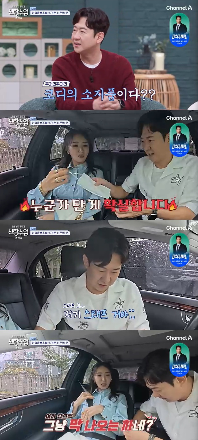 소월이 "수상한데. 여자 립스틱이 막 나오는 차네"라고 했지만 천명훈은 "에헤이 그런 거 아냐. 그럴 리가 없어"라며 진땀을 뺐다.