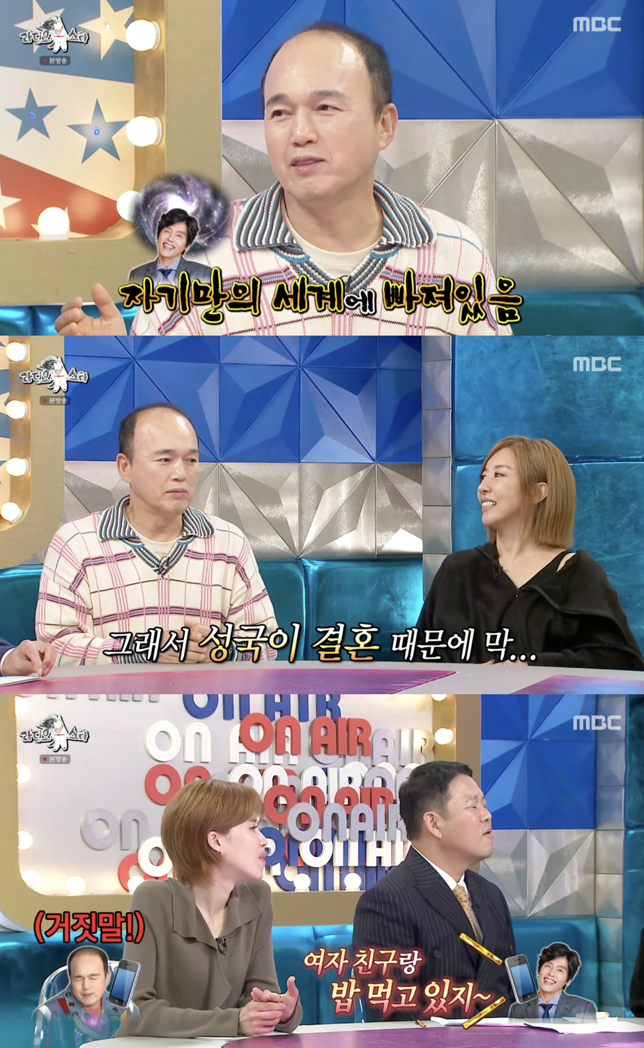 그는 "그 친구는 자기만의 세계가 완벽한 애다. 결혼을 못 하겠다 싶었는데 어느날 갑자기 결혼을 하더라. 그거 때문에 충격을 받아서 말도 잘 안 나오고 입맛도 떨어졌다. 걔가 계속 나를 놀렸다"라고 털어놔 웃음을 자아냈다.