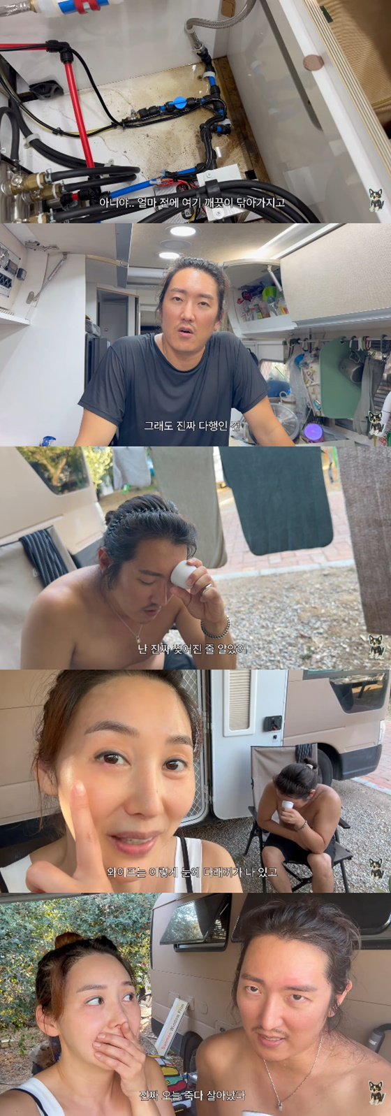 민지영은 캠핑카의 물이 새고 있다고 밝혔다. 그는 "갑자기 물을 사용하는데 소리가 너무 크게 들려서 봤더니 물이 새고 있다. 그런데 흙탕물이다. 이게 웬 난리냐"라고 말했다.