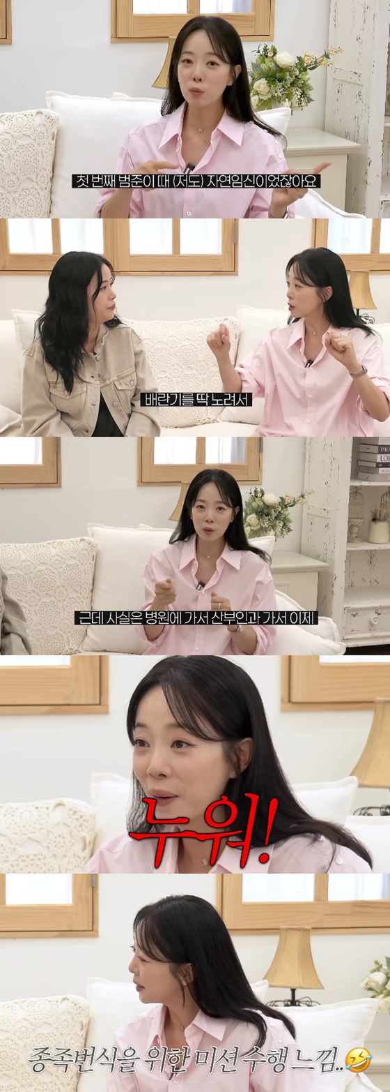 박은영은 "자연임신이지 않냐. 정말 파이팅 넘쳤더라. 나도 첫째 범준이 때 자연임신이었는데 우리랑 했던 거랑 패턴이 비슷하더라"라며 "자연임신 하는 분들 이렇게 실천해 보셔라"고 말했다.