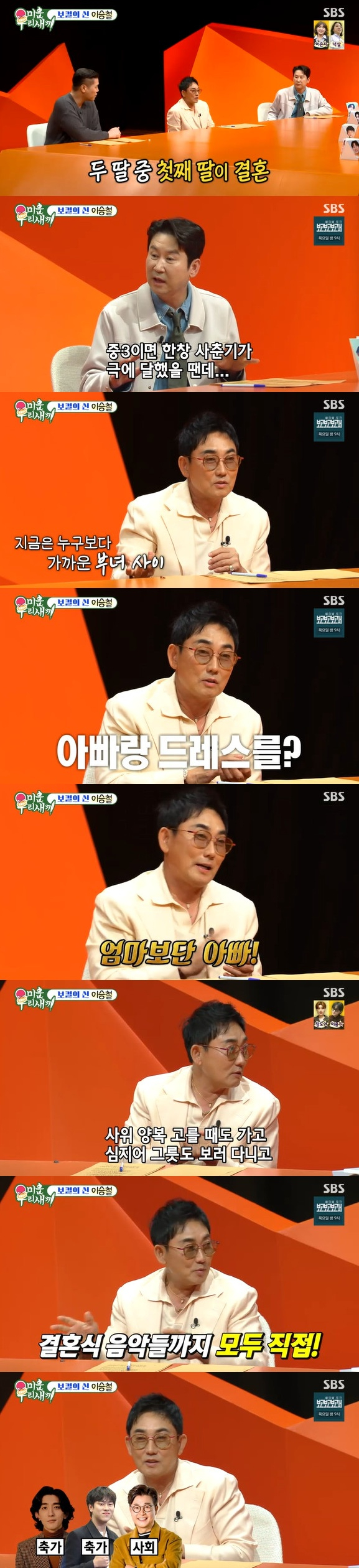 하지만 이제는 둘도 없는 부녀(父女) 사이가 된 이들. 이승철은 "딸이 결혼을 준비하며 저를 엄청 불러댔다. 드레스 맞출 때도 날 불렀다. 엄마보단 아빠 눈을 믿는 거다. 사위 양복 고를 때도 제가 가고, 심지어 그릇 고를 때도 같이 갔다"라고 밝혔다.